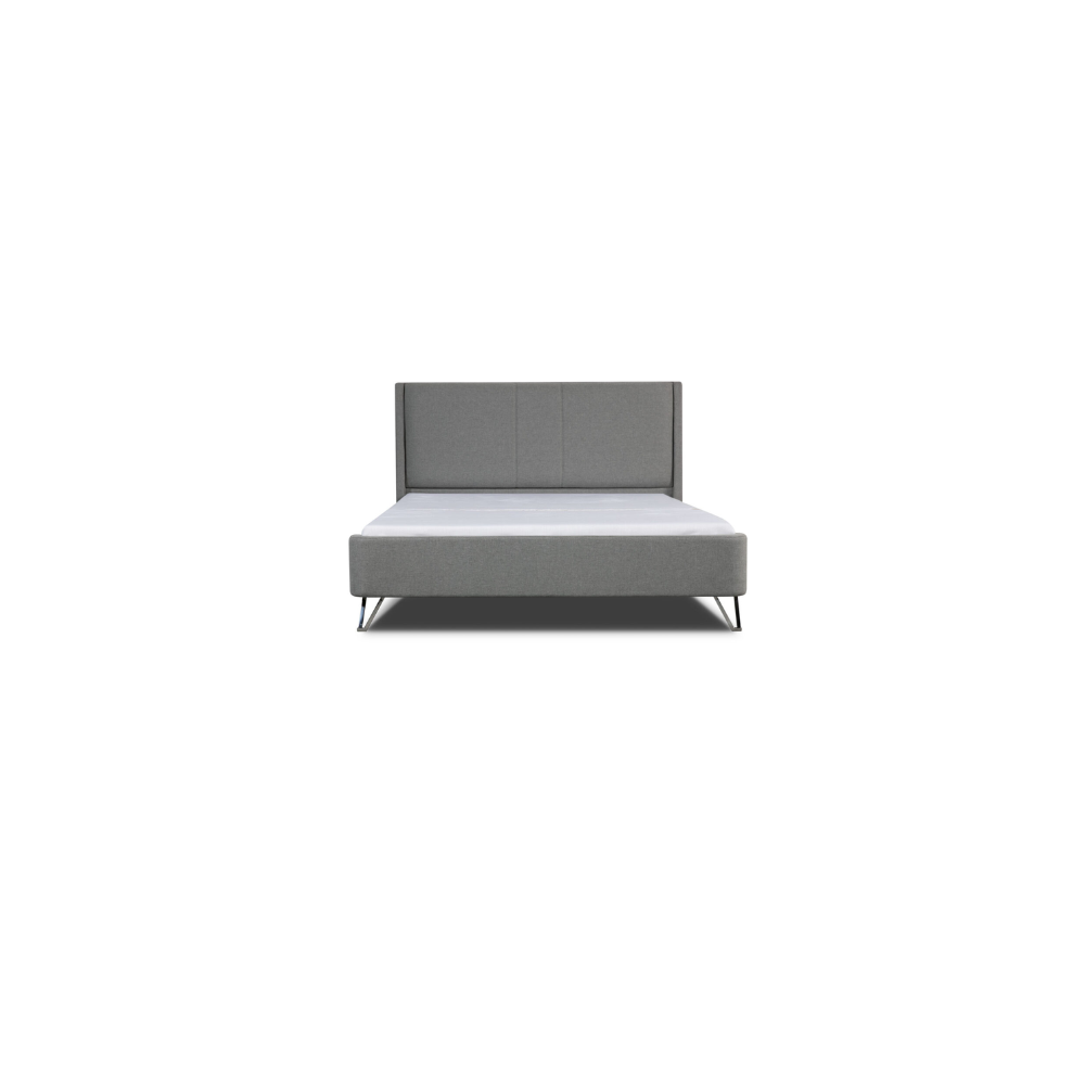 Cama couro, com acabamentos dos pés em madeira tabaco.