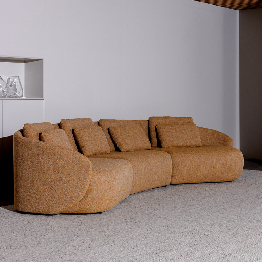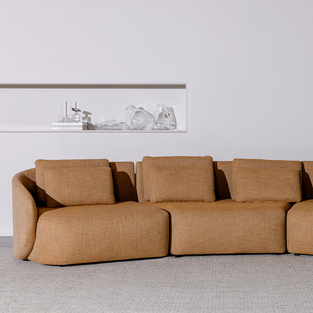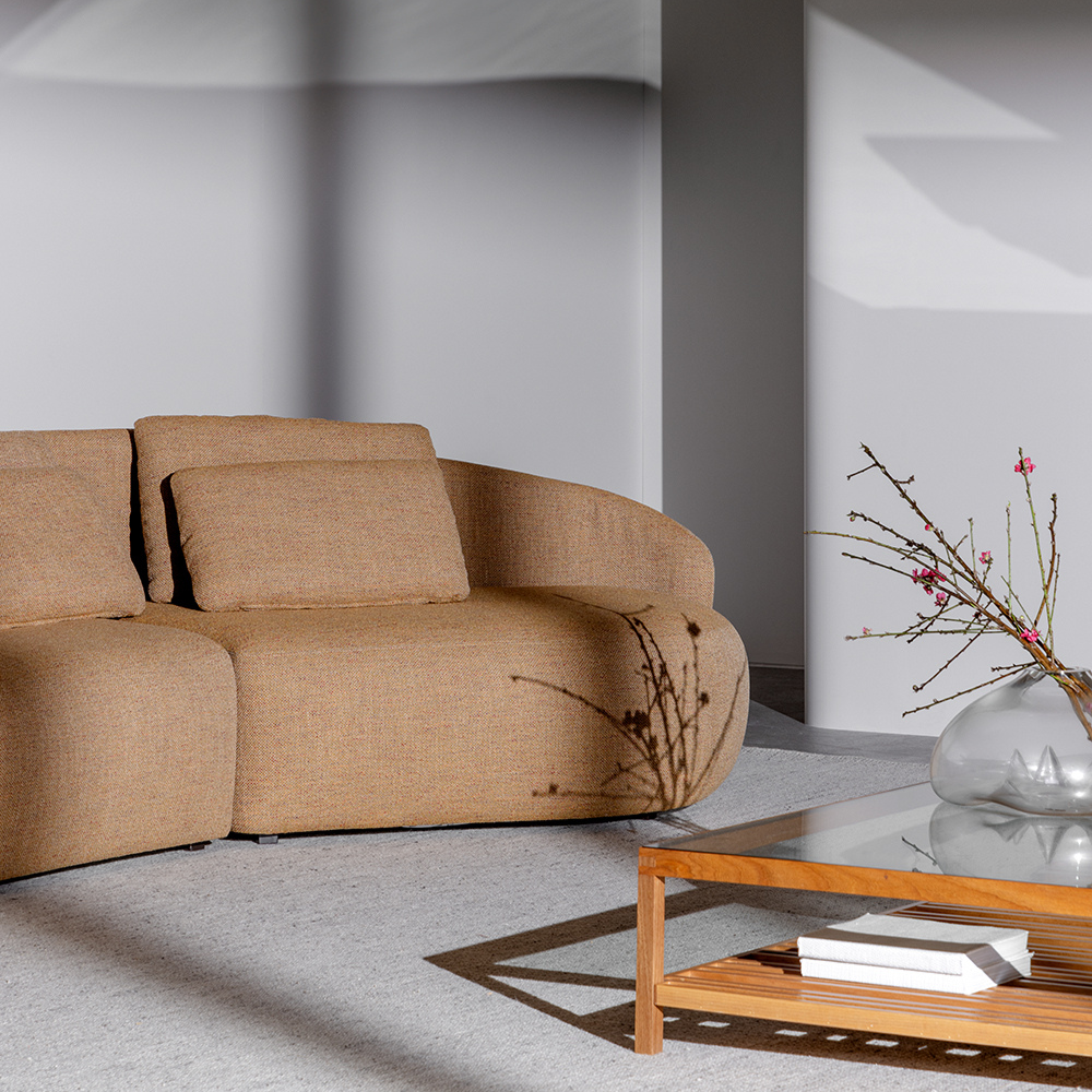 Descrição: Com formas orgânicas inspiradas nas raízes do gengibre, o Gingi é uma peça que trabalha variações de composição, unindo um sentar firme com postura despojada.