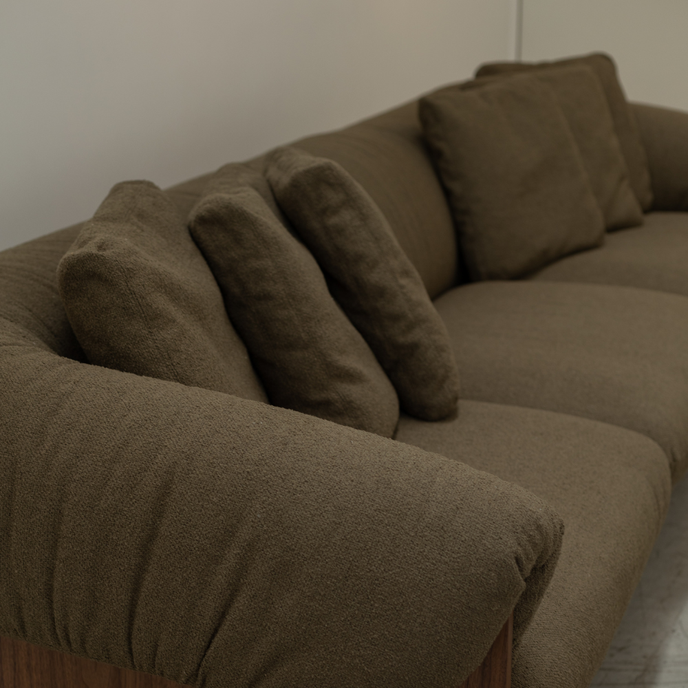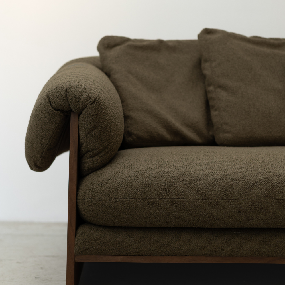 O sofá traduz a essência da personalidade marcante do meu pai e do meu avô. Suas linhas retas e imponentes em madeira evocam a força e a firmeza que sempre definiram suas presenças. Em contraste, o estofado, representa o abraço acolhedor e o coração generoso. Cada detalhe carrega a essência da bondade e a nobreza de sempre estenderem as mãos ao próximo.