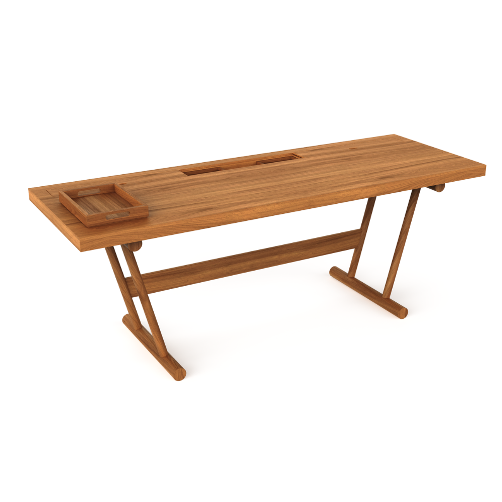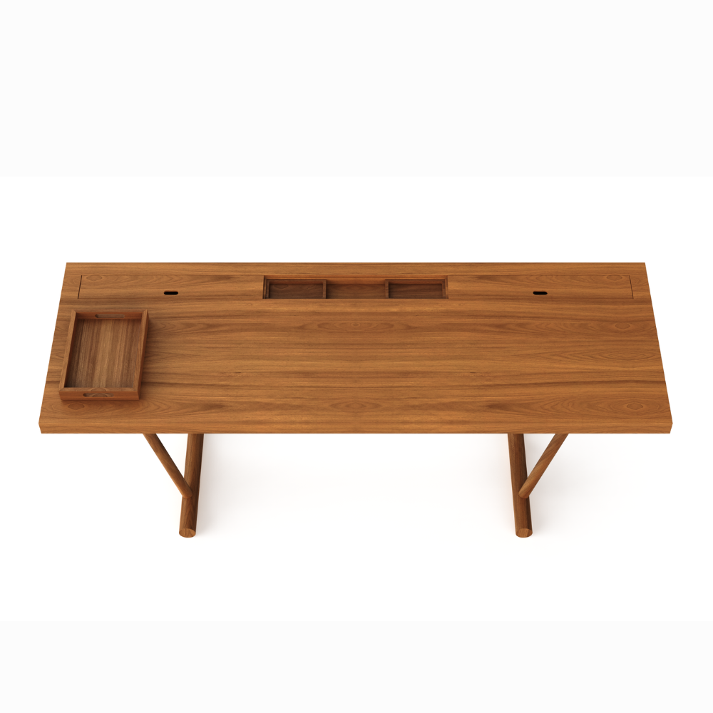 e funcionalidade. A escrivaninha se destaca pelos perfis arredondados e base porta-lápis, porta-objetos e caixa organizadora, com possibilidade de passa-fio. Parte da Coleção Kaleidoscope, que é focada em criar novas perspectivas através da composição entre peças, o móvel soluciona um desafio formal ao passo que agrega beleza à perspectiva.