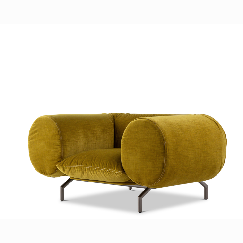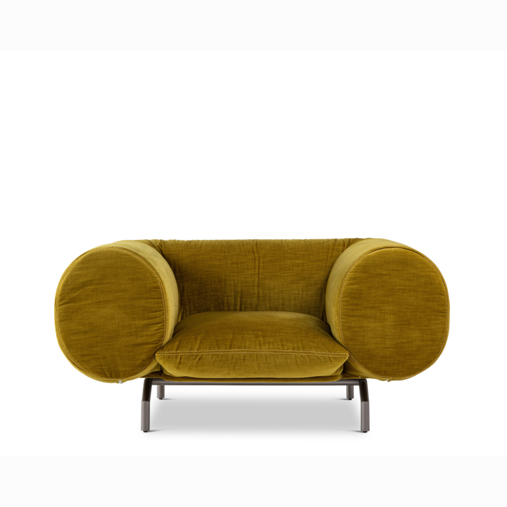 Descrição: Nave é a peça que representa o movimento, a travessia, o legado. Uma clara referência às migrações e deslocamentos da história da minha família da Itália ao Brasil, do passado ao presente. Seu nome é metáfora, e seu desenho sugere navegação, rumo, travessia emocional. É um sofá para encontros íntimos ou expansivos.