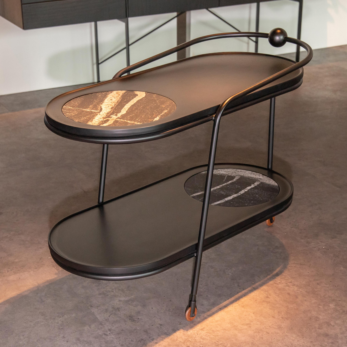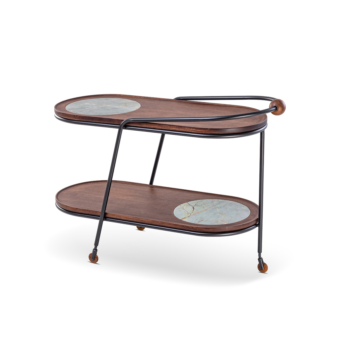 Bandeja com detalhes em pedra e acabamentos em madeira maciça